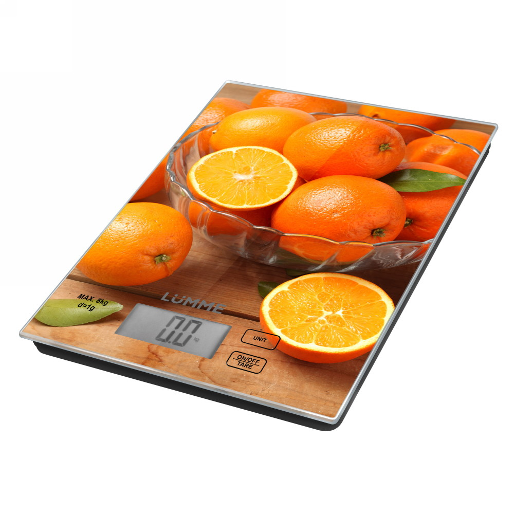 Яркие кухонные весы с красивой и прочной поверхностью из закаленного стекла, большим жидкокристаллическим дисплеем, функцией «ТАРА».