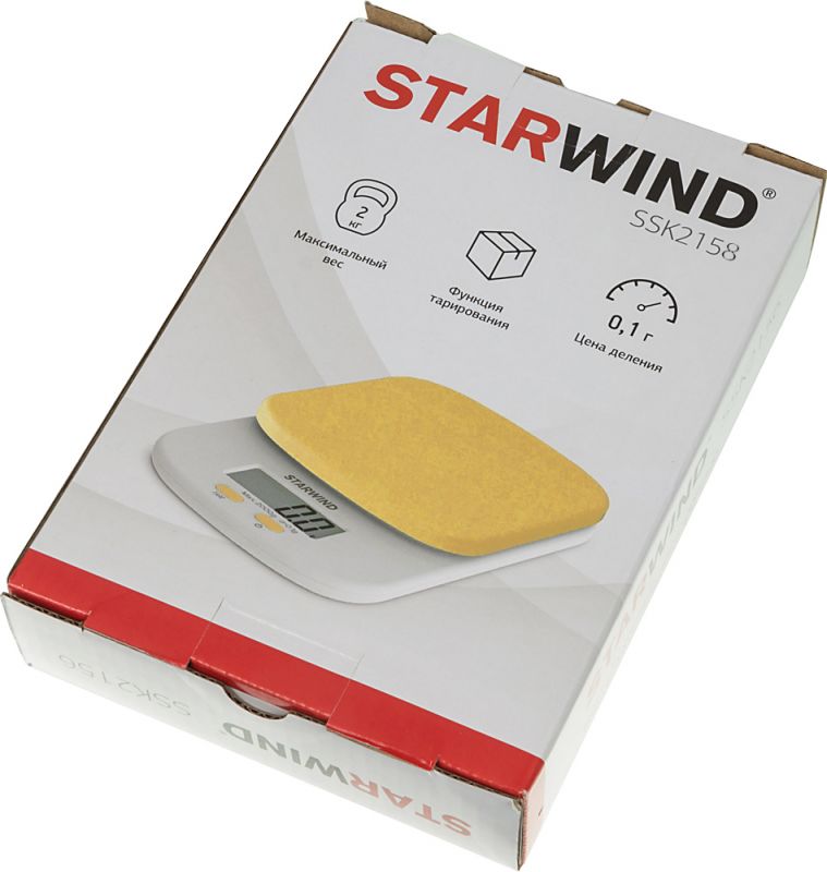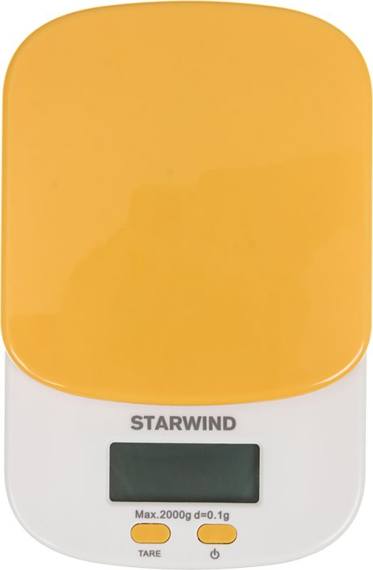 Максимальный вес составляет 2 кг, при этом есть функция обнуления тары, что позволяет взвесить массу конкретного продукта или поэтапно добавлять в миску ингредиенты, обнуляя после каждого и взвешивая каждый отдельный продукт, что позволяет экономить время и сразу все закладывать в одну тару. Корпус модели электронных кухонных весов STARWIND SSK2158 выполнен из пластика в сочетании белого и оранжевого цветов. На дисплей выводится информация о весе, при этом шаг измерения позволить взвесить продукты с точностью до 0,1 грамма. При продолжительном отсутствии действия с прибором – весы отключаются, что продлевает срок службы элементов питания. Всего требуется 2 батарейки типоразмера «ААА». Гарантия на данную модель весов предоставляется сроком на 12 месяцев от производителя в официальных сервисных центрах.