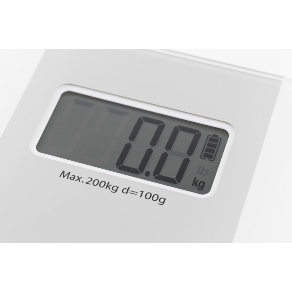 Большой дисплей способствует хорошей читаемости цифр, имеет высокую степень контрастности. Также на экране отображается информация об уровне энергии. Благодаря использованию современной технологии четырех датчиков, показания устройства отличаются максимальной точностью (погрешность составляет всего 100 граммов).