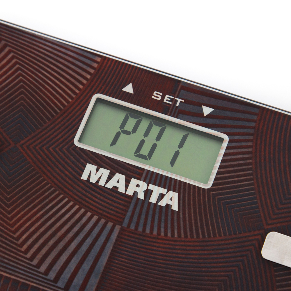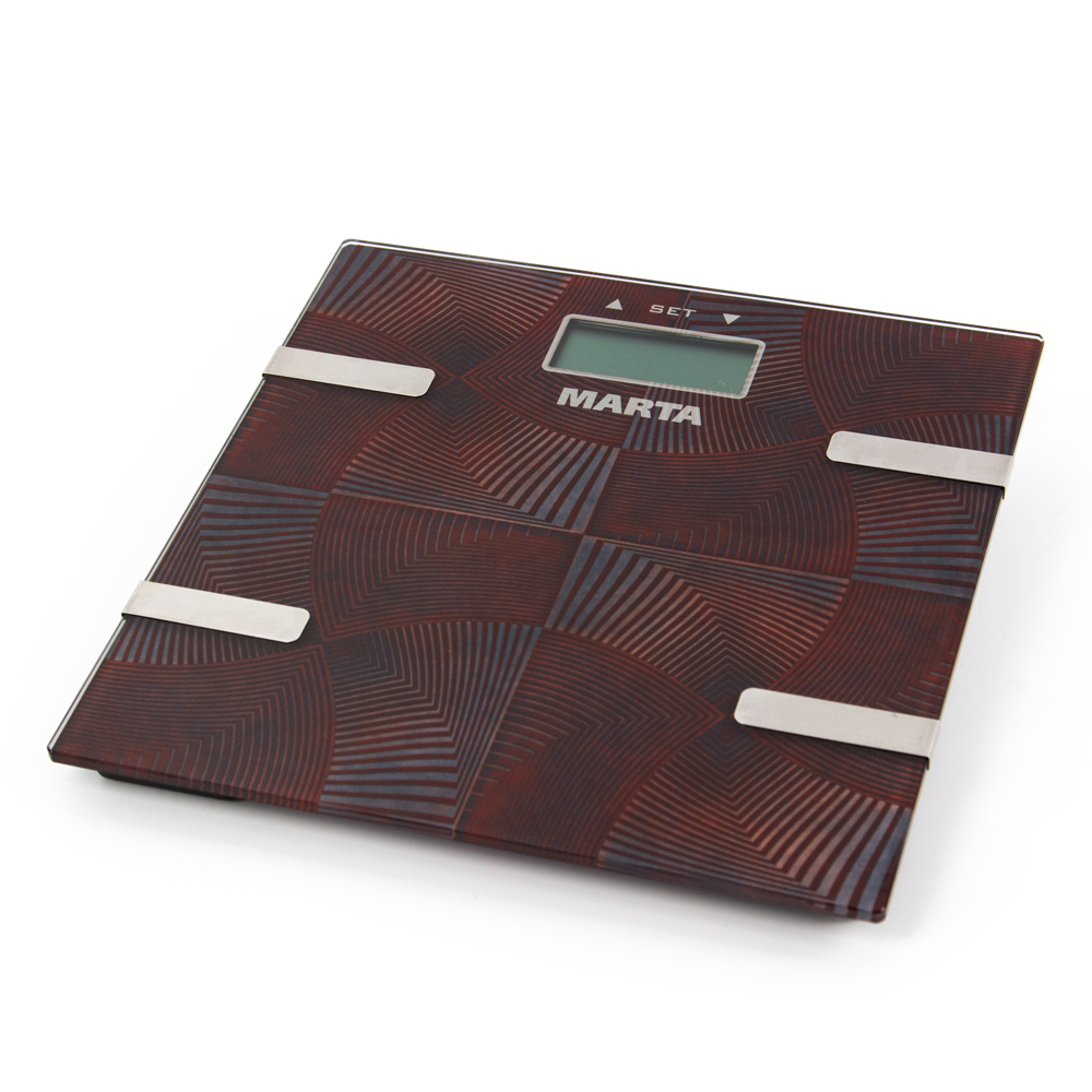 Напольные весы MARTA MT-1675 – диагностические весы для измерения уровня жира, воды, мышечной и костной массы.