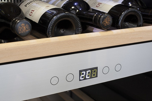 Семь съемных полок из дерева предназначены для правильного хранения вина: бутылки кладутся горизонтально (вместительность – 66 бутылок). Деревянные полки оборудованы фиксаторами от самопроизвольного выдвижения и компенсируют механические воздействия компрессора и вентилятора.