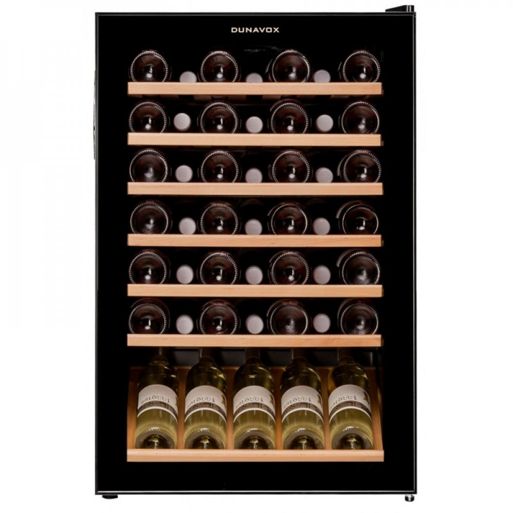 DX-48.130KF самый доступный винный шкаф в пересчете на стоимость хранения одной бутылки. Модель укомплектована семью полками из натурального дерева (включая одну презентационую) и одной металлической демонстрационной решеткой для вертикальной установки бутылок. Шкаф имеет одну зону охлаждения. Индикатор температуры и внутренняя подсветка выполнены на светодиодах приятного синего цвета.