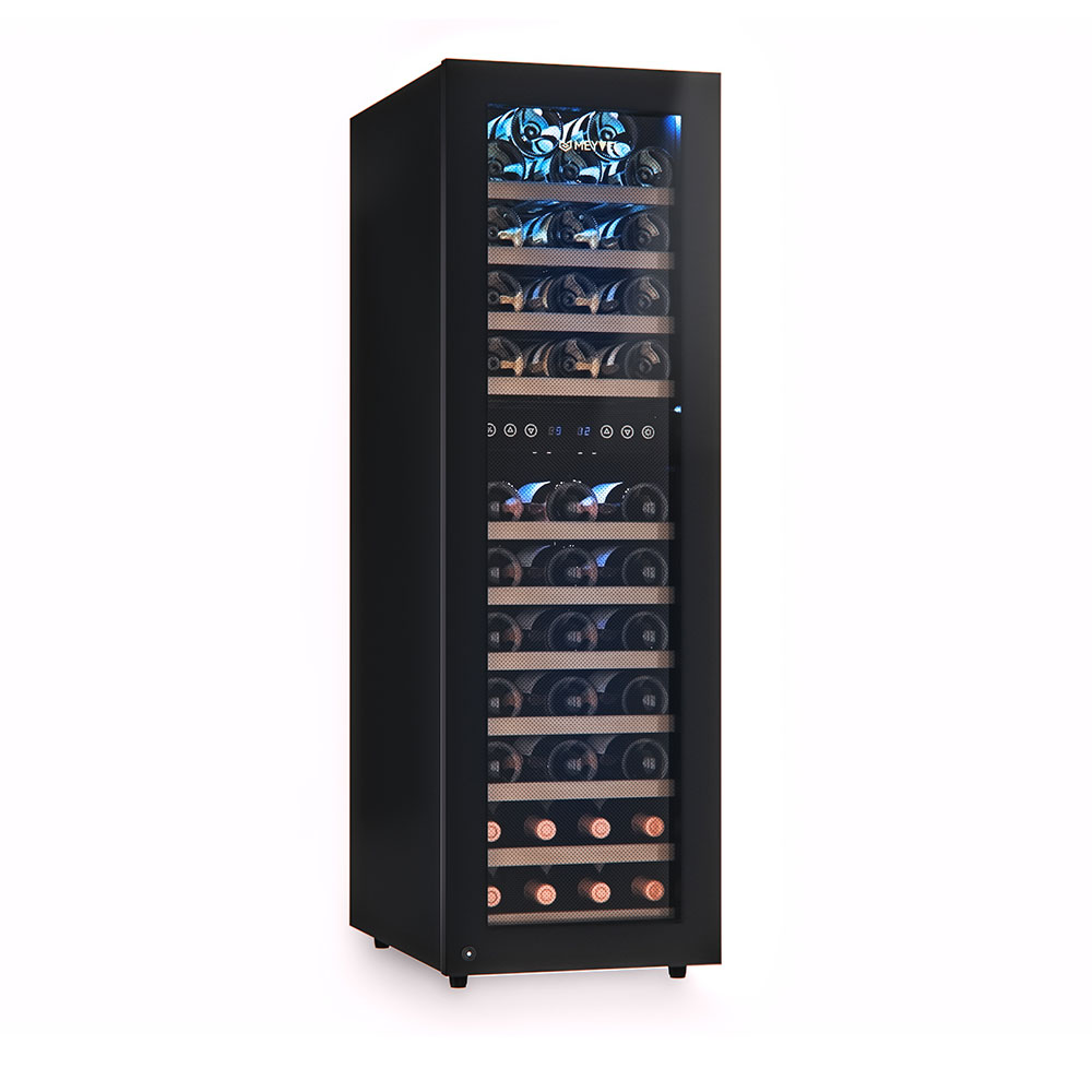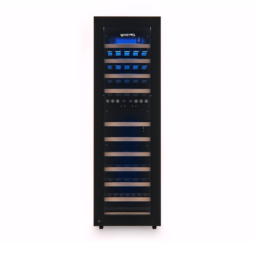 Равномерное охлаждение содержимого шкафа достигается благодаря качественной циркуляции воздуха. С помощью современной сенсорной панели управления Вы сможете быстро и легко управлять всеми функциями шкафа. Практически бесшумная работа винного шкафа Meyvel MV53-KBF2 достигается благодаря установленному современному и энергоэффективному компрессору. Модель оснащена многоступенчатой системой гашения вибраций, обеспечивая полный покой Вашей винной коллекции.
