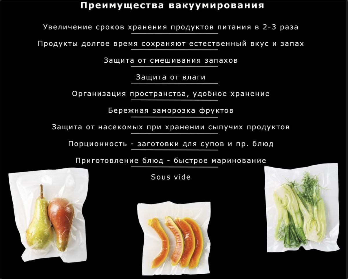 Прибор предназначен для приготовления пищи в домашних условиях. Данный прибор позволяет упаковывать большинство продуктов питания, в том числе: овощи, фрукты, рыбные продукты, молочные продукты, мясо, салями, выпечку, кулинарные изделия, сухие продукты и т. д.