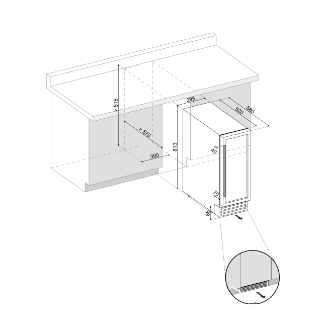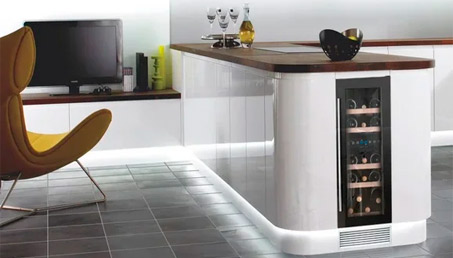 Охлаждение системы компрессора организовано через вентиляционные решетки внизу шкафа. Винный шкаф нельзя устанавливать на тёплые полы или рядом с батареями.