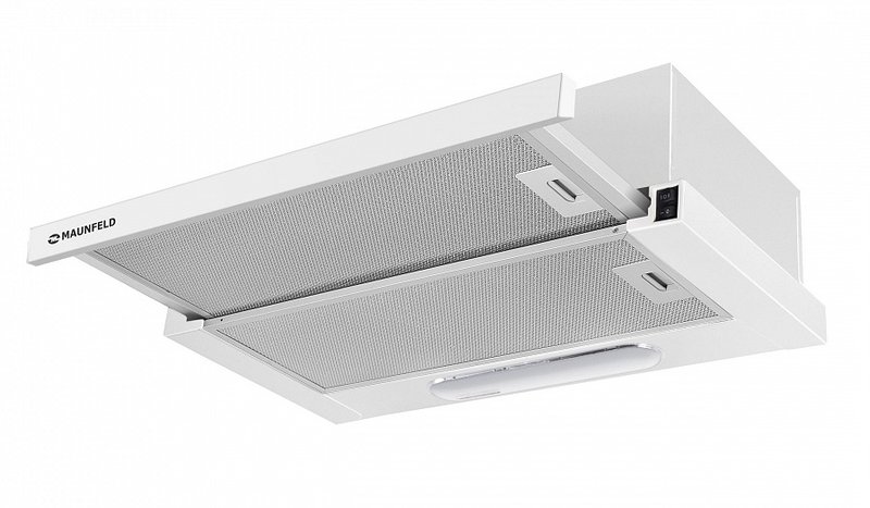 Кухонная вытяжка MAUNFELD VS Light 50 представлена в белом цвете. Материал короба — высокопрочная сталь, устойчивая к истиранию. Выдвижной козырек поможет легко удалить различные загрязнения воздуха в помещении. Галогеновое освещение позволяет прекрасно видеть рабочую поверхность плиты.